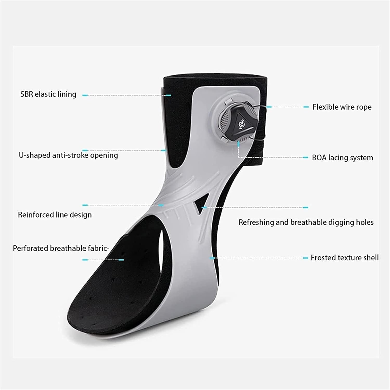 Weighing only approx. 70 g, this orthosis is almost imperceptible when worn. Adjustable straps ensure secure and individually tailored fastening, while the soft terry padding protects the skin and prevents irritation during long-term use.