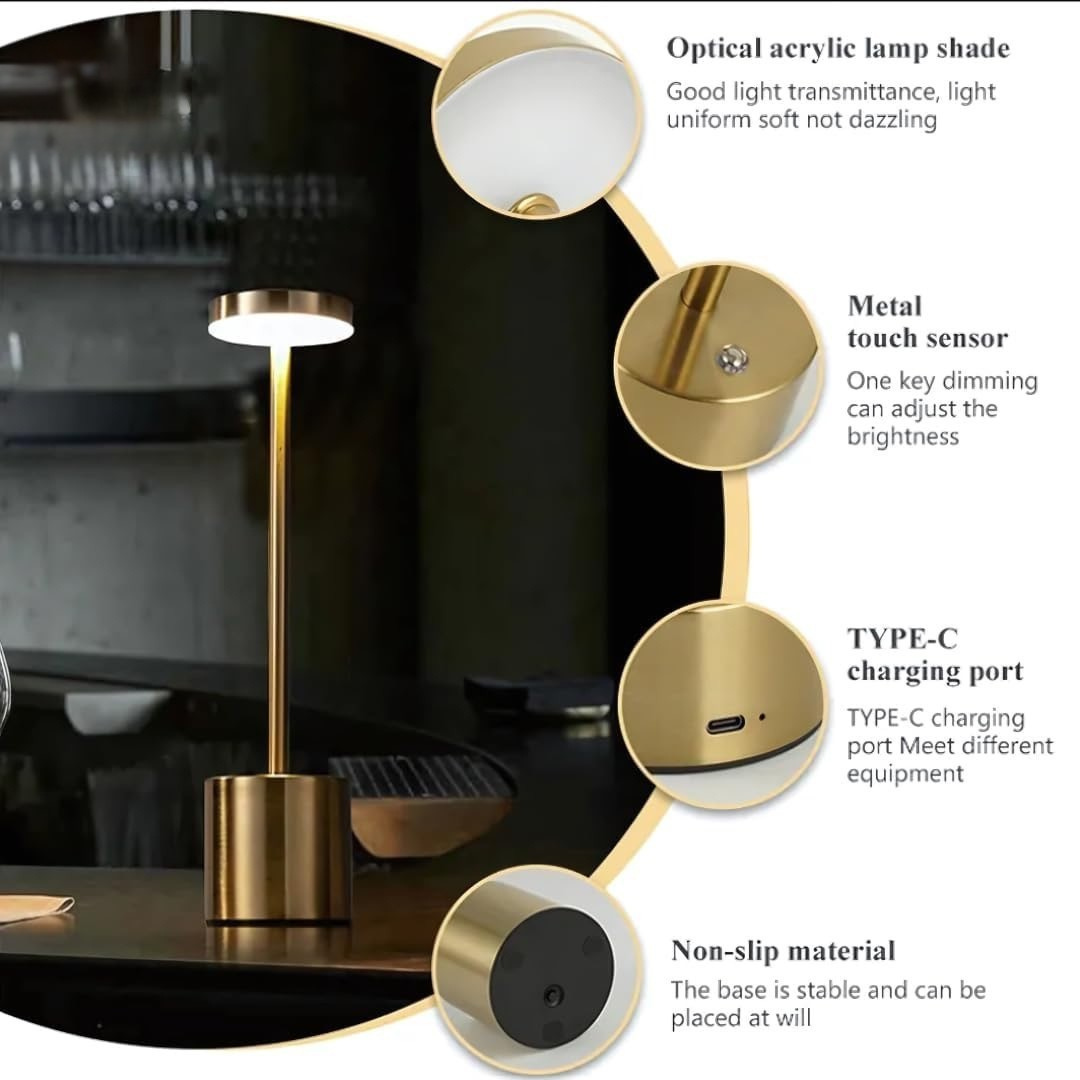 Vyrobená z nerezové oceli s elegantním kulatým stínidlem, tato minimalistická lampa spojuje eleganci a praktičnost. Kompaktní a lehký design umožňuje snadné přesouvání, zatímco nabíjecí baterie zajišťuje flexibilní, bezdrátové používání všude tam, kde potřebujete dodatečné světlo.