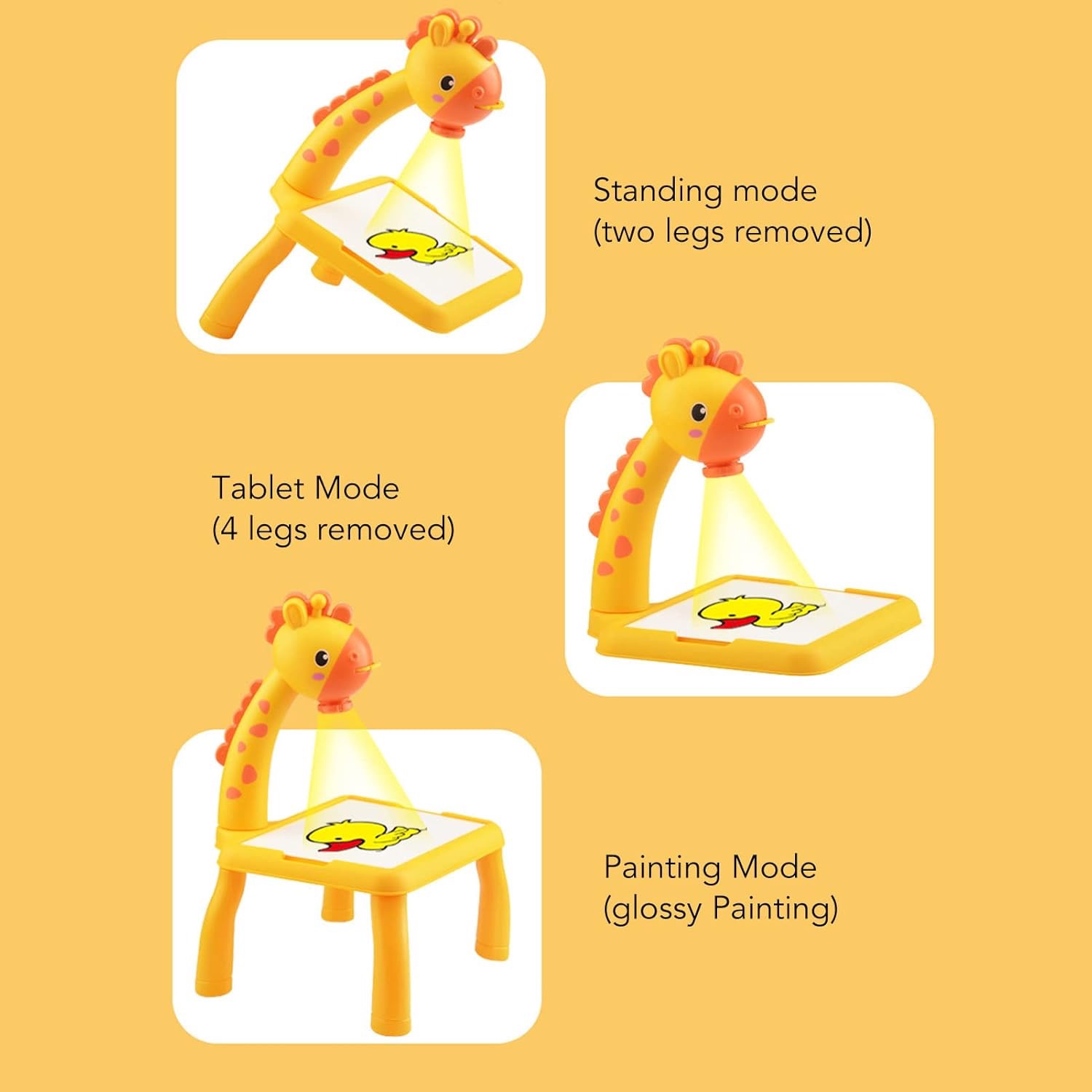 Tento všestranný projektor na kreslení se přizpůsobí různým stylům hry. Lze ho použít jako samostatně stojící projektor, jako plochou kreslicí desku ve stylu tabletu nebo jako kompletní kreslicí stůl s nohami, což dětem umožňuje zkoumat různé techniky kreslení a kreativní uspořádání.
