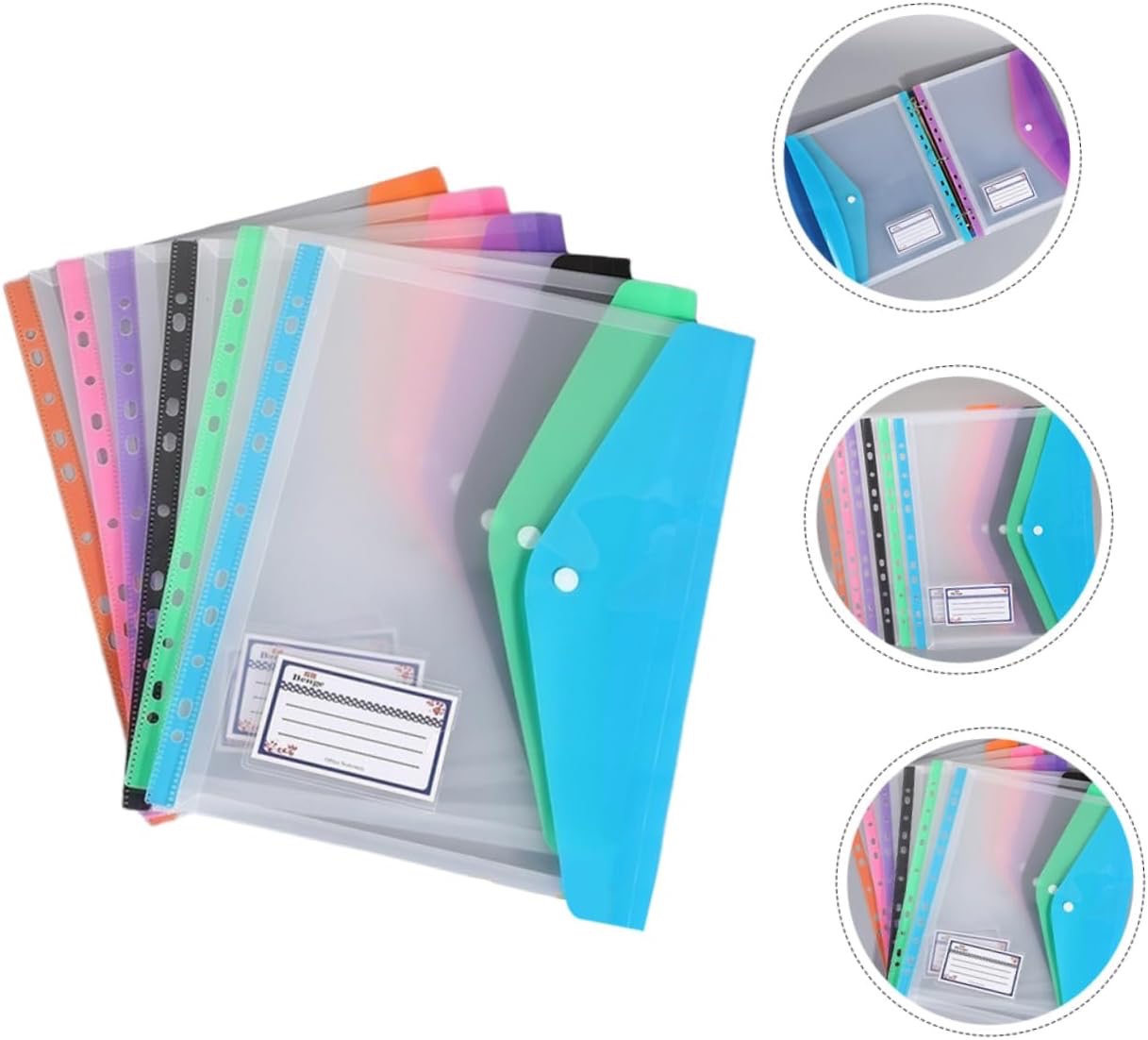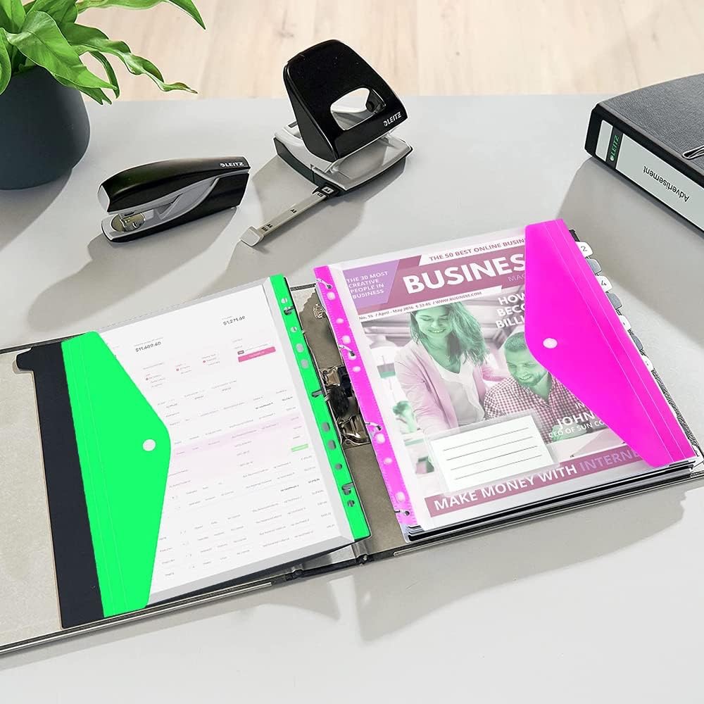 Díky průhlednému materiálu ihned vidíte, co je uvnitř, aniž byste museli složku otevírat. Bezpečné zapínání na knoflík ochrání vaše papíry a šest výrazných barev zpřehlední organizaci.