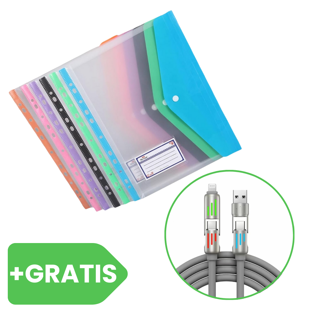 📂 Mějte své dokumenty vždy přehledně uložené a organizované se složkami SEAL! Tato sada 6 barevných průhledných složek vám usnadní třídění, ochranu i úschovu všech důležitých papírů — a zde je bonus: ke každé sadě SEAL navíc získáte výkonný ZINC 4v1 rychlonabíjecí kabel jako GRATIS. ⚡🎁