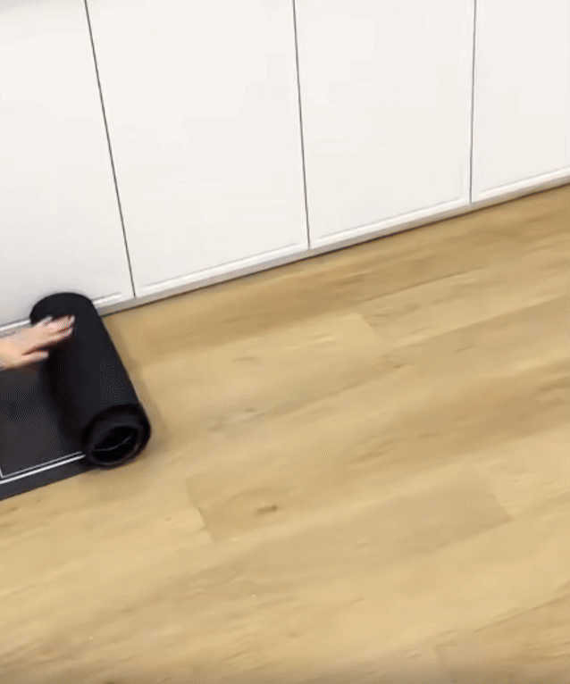 DROPMAT zajišťuje bezpečnost při vaření díky protiskluzové spodní straně, která pevně drží na podlaze. Zabraňuje uklouznutí a poskytuje stabilní povrch, díky čemuž se můžete po kuchyni pohybovat s jistotou.