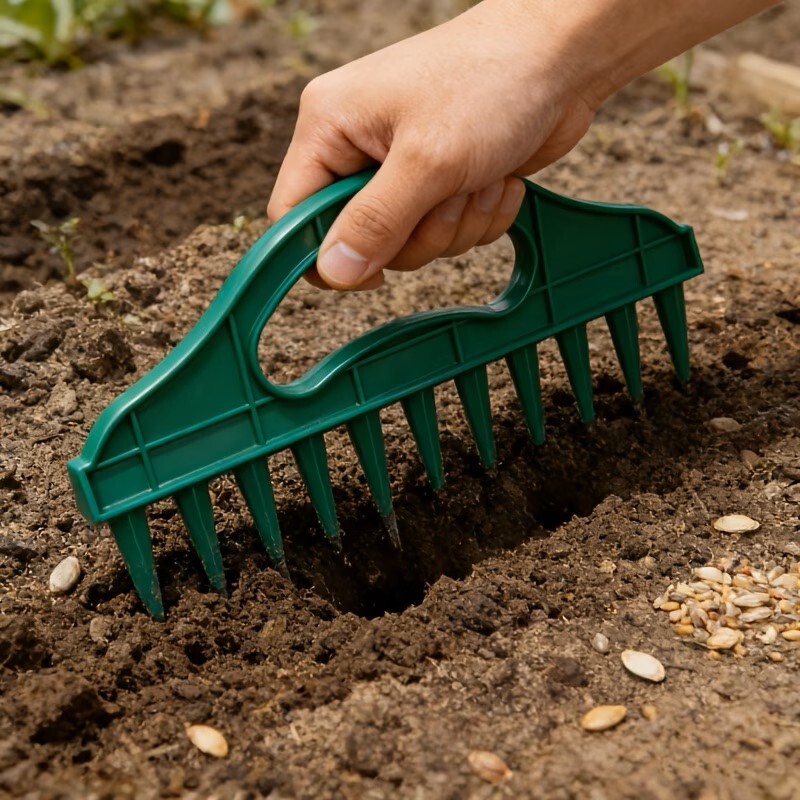 Je navržen tak, aby vám pomohl vytvořit čisté a rovnoměrně rozmístěné otvory pro semena, cibulky a sazenice v záhonech nebo nádobách.