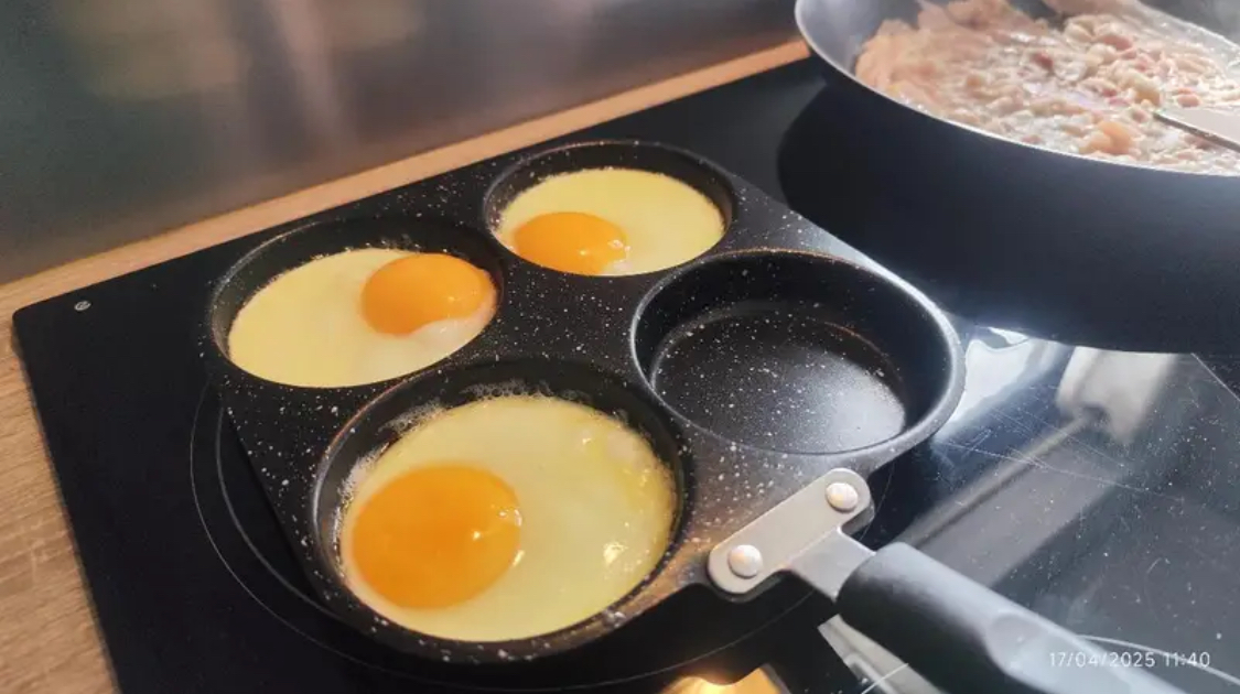 Tato pánev se čtyřmi otvory je ideální pro rychlou a hravou přípravu jídel bez nepořádku. Smažte vejce, palačinky nebo mini omelety najednou — je to revoluce pro rušná rána a zábavný způsob, jak zapojit děti do kuchyně. Ať už připravujete kompletní snídani nebo svačinu, každý den vám ušetří čas i námahu.