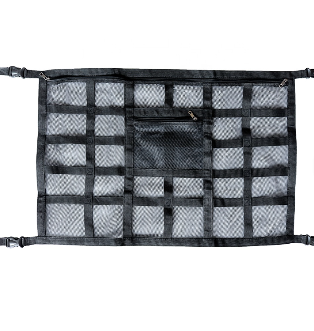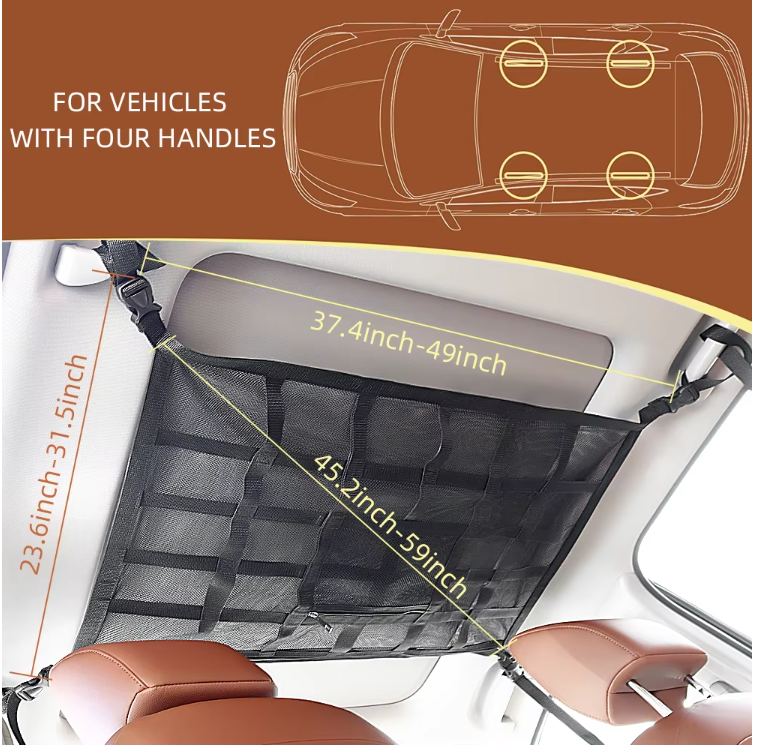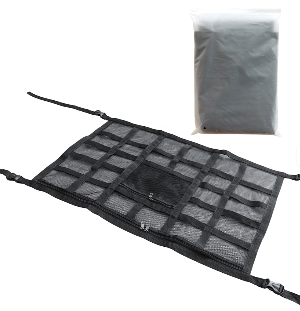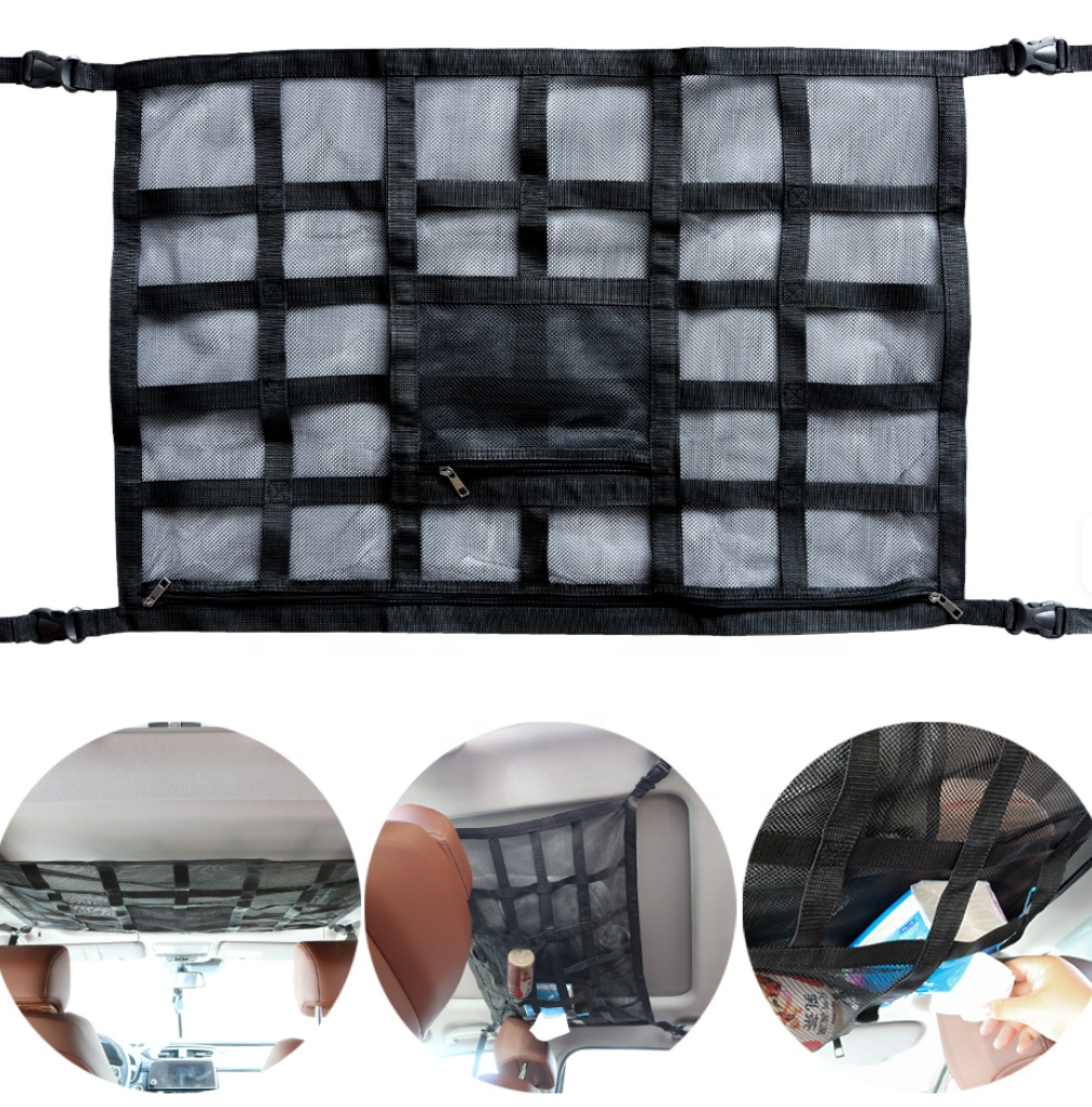Vyroben z polypropylenových popruhů a polyesterové sítě, tento organizér je odolný a snese vysokou zátěž. Ideální řešení pro každého, kdo chce maximálně využít prostor pod stropem vozidla bez zbytečných komplikací.