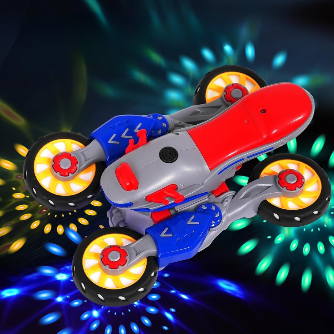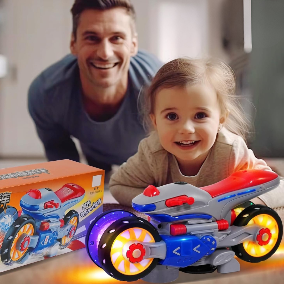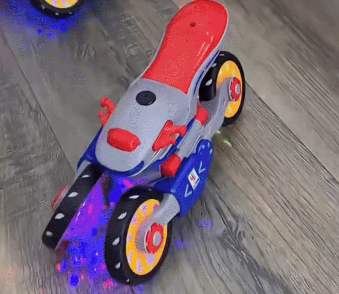 Motorka se otáčí o 360 stupňů a okamžitě reaguje na překážky, čímž vytváří hravý a dynamický zážitek. Jasná LED světla a živá hudba proměňují každou jízdu v barevnou a poutavou show, která upoutá pozornost a představivost dětí.