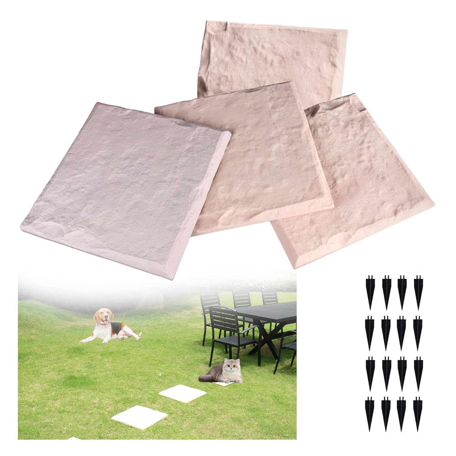 Každá deska má čtyři upevňovací kolíky, které zajišťují pevnou instalaci do země. Jednoduchá montáž bez nářadí vám umožní rychle vytvořit bezpečnou a stabilní cestu – bez klouzání nebo posouvání. 👣🔒