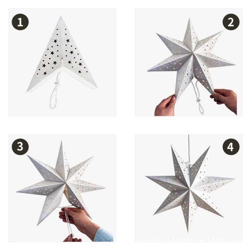 Skládací konstrukce a přiložené osvětlení umožňují snadné sestavení, zavěšení i používání těchto papírových hvězd. Můžete je jednoduše připevnit na vánoční stromky, stěny či okna a vytvořit tak okouzlující sváteční atmosféru. Po skončení oslavy je snadno složíte a uložíte pro další použití — rychle a opakovaně.